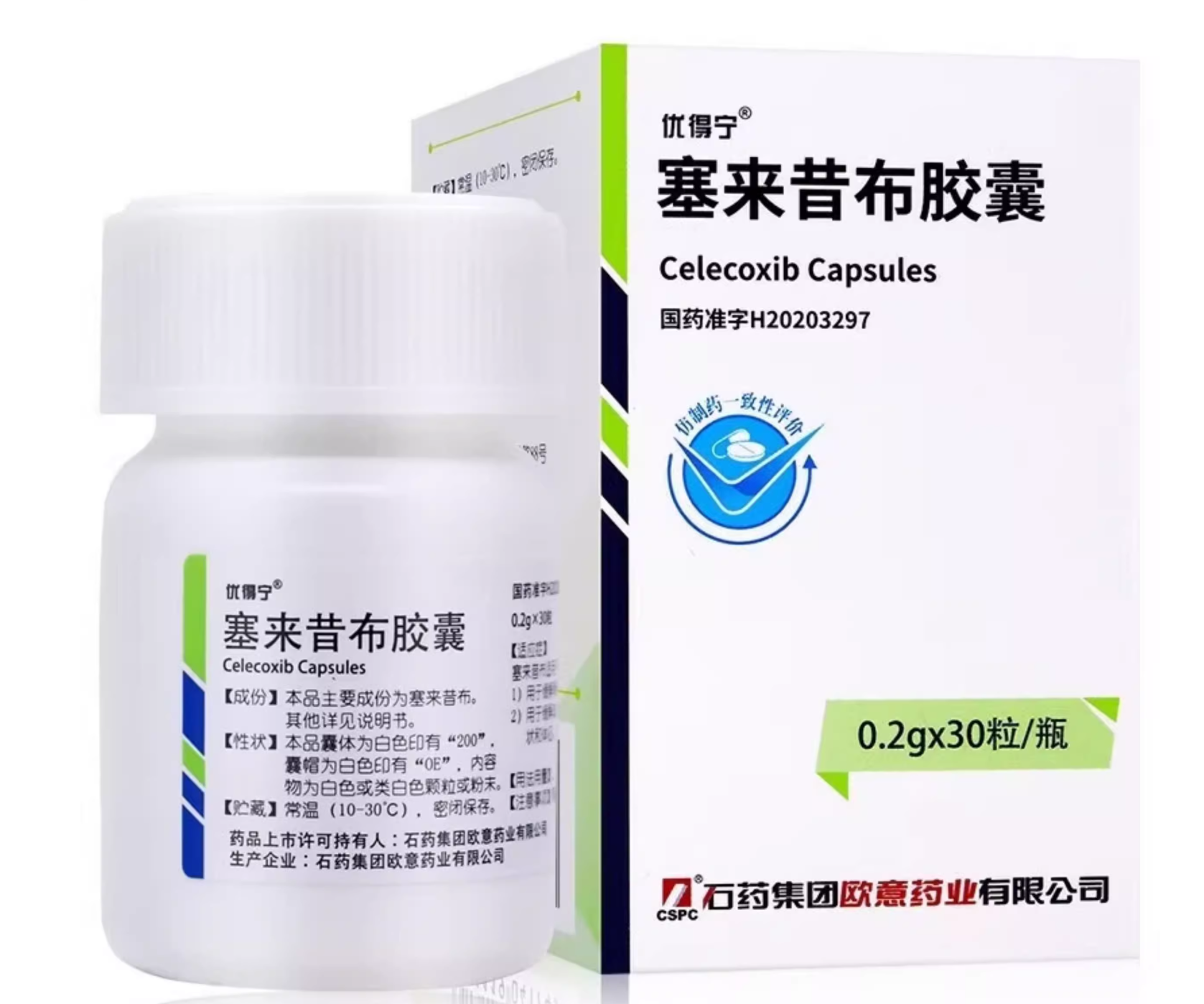Celecoxib, sold under the brand name Celebrex among others, is a COX-2 inhibitor and nonsteroidal anti-inflammatory drug (NSAID). It is used to treat the pain and inflammation in osteoarthritis, acute pain in adults, rheumatoid arthritis, psoriatic arthritis, ankylosing spondylitis, painful menstruation, and juvenile rheumatoid arthritis. It may also be used to decrease the risk of colorectal adenomas in people with familial adenomatous polyposis.It is taken by mouth.Benefits are typically seen within an hour.